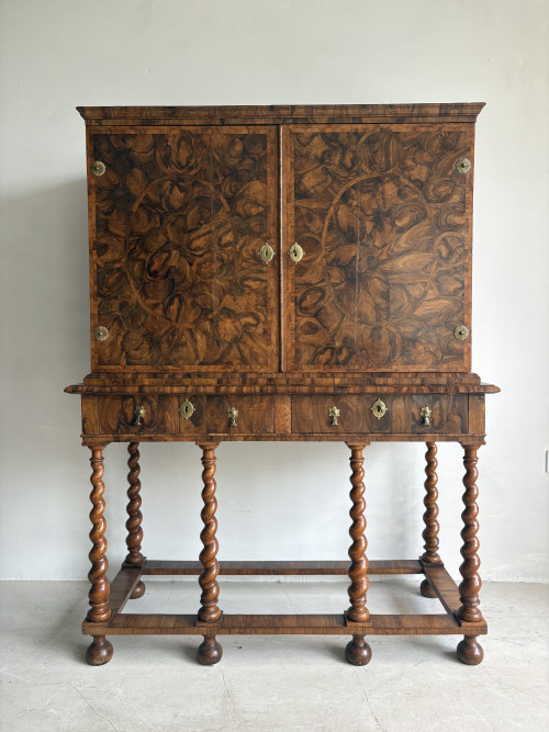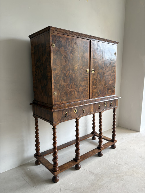 A texturally very detailed carved pedestal base raised on huge scrolls ,in a tree trunk and branch like design,giving the piece a rather contemporary look. Very unusual stylish form.
